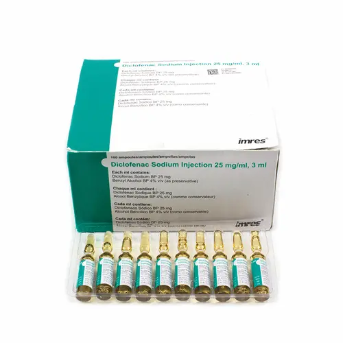 Diclofenac ist ein nichtsteroidales Antirheumatikum (NSAR), das zur Linderung von Schmerzen und Entzündungen bei verschiedenen Erkrankungen eingesetzt wird. Es ist in Form von 25 mg/ml Injektionslösung in 3 ml Ampullen erhältlich.